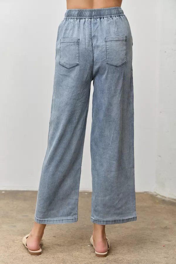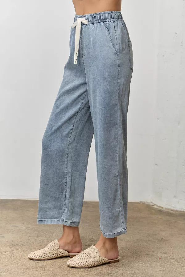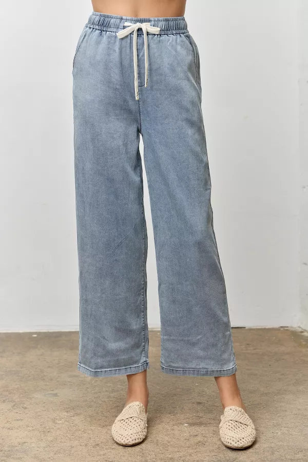 Comfort meets style in these laid-back denim pants! The soft fabric feels amazing against your skin, while the drawstring waist gives you the perfect fit every time. Wide legs create a relaxed, effortless silhouette that's perfect for everything from casual coffee runs to weekend hangouts. Roomy pockets mean you've got space for all your essentials, making these pants as practical as they are fun.