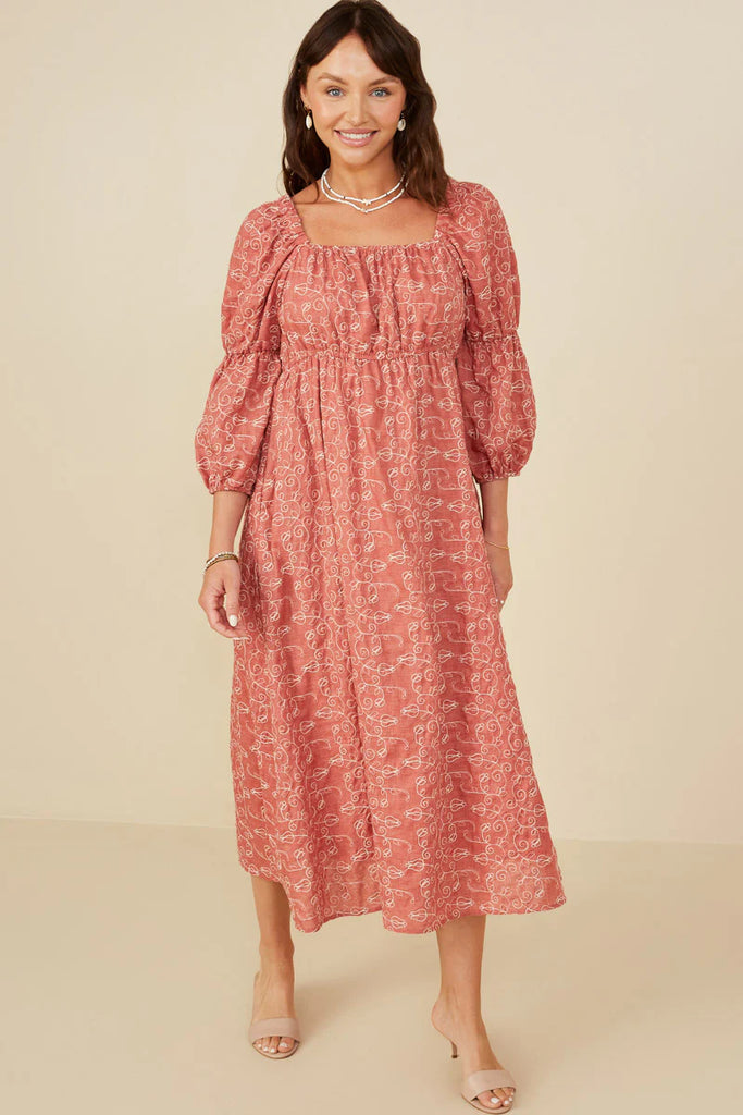 The Beth Puff Sleeve Floral Midi Dress in Cream