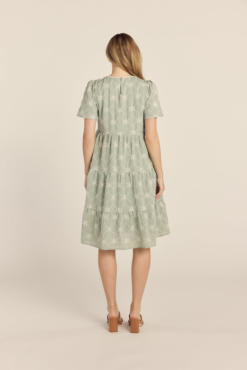 The Holly Tiered Dress in Sage