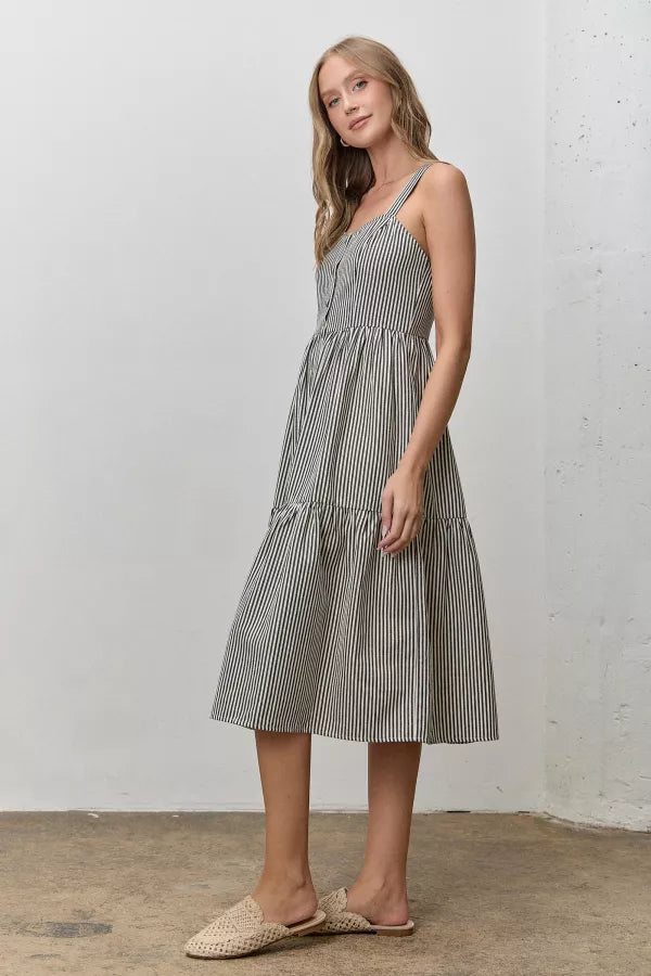 The Catherine Striped Overall Midi Dress Black