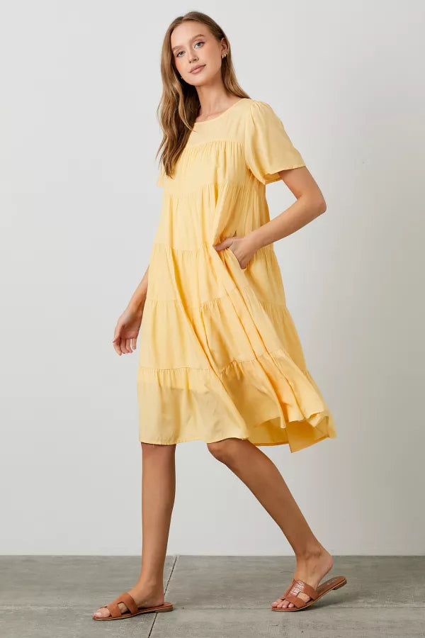The Nyah Tiered Midi Dress in Lt. Yellow
