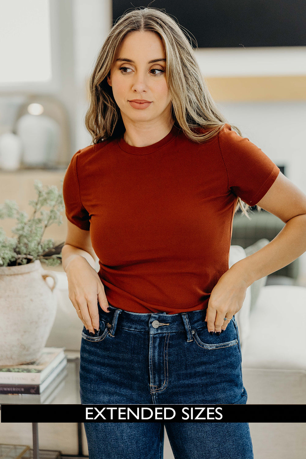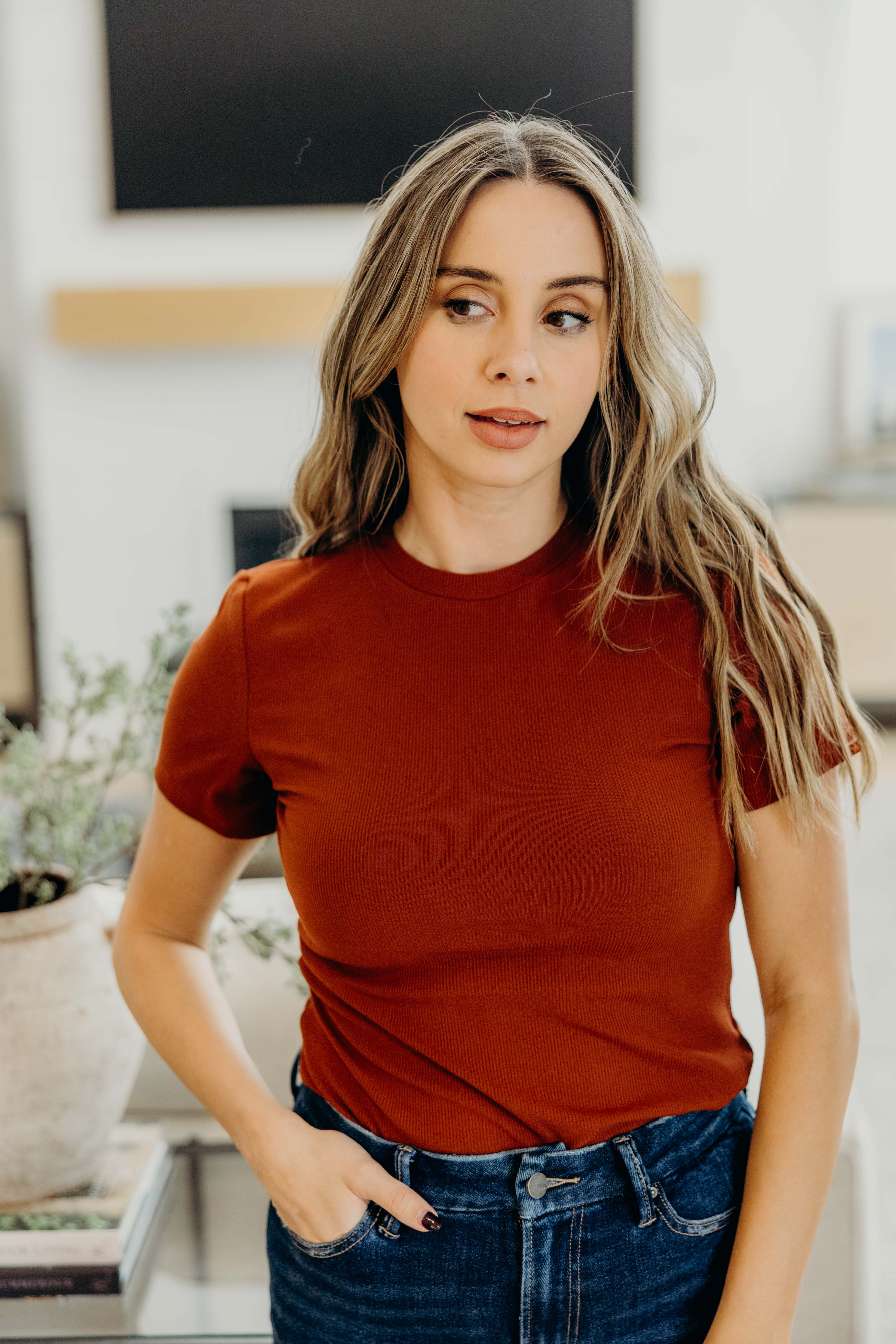 Short Sleeve Ribbed Tee in Smoked Paprika