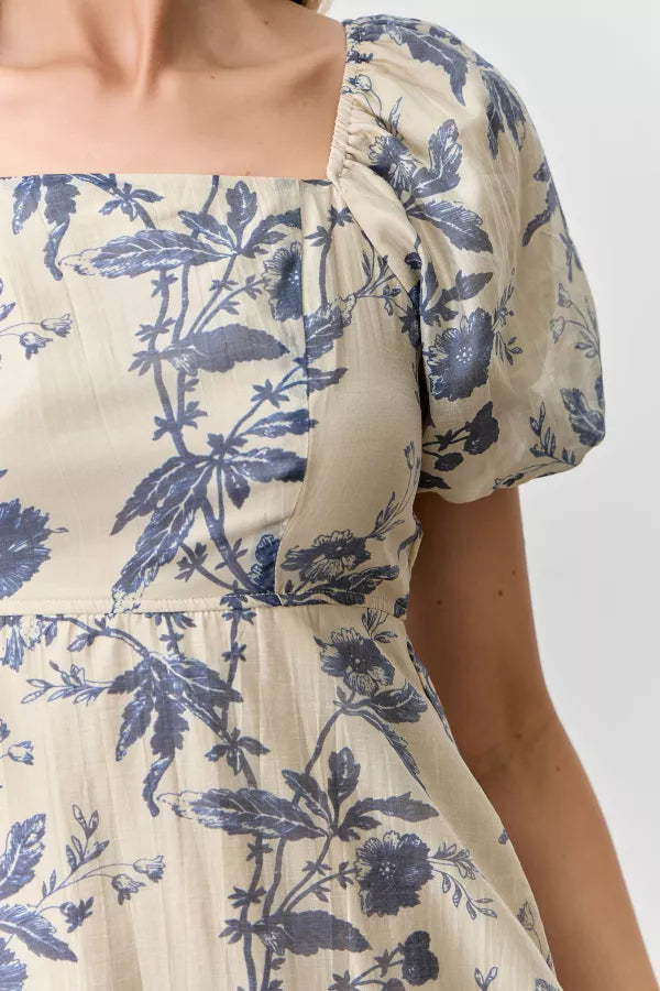 The Thomasina Floral Bubble Sleeve Dress in Natural/Navy