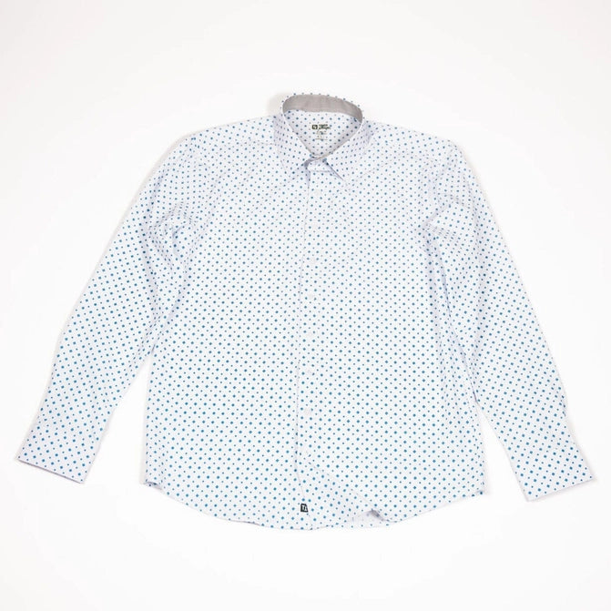 Hustle Men's Sport Shirt - Long Sleeve Slim White Cobalt Diamond