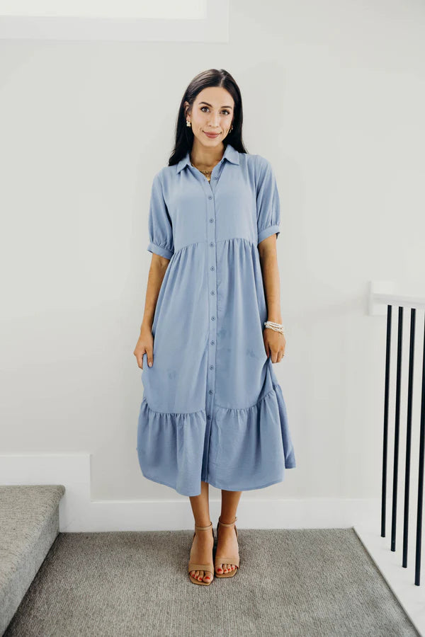 The Hailey Button Down Midi Dress in Tencel