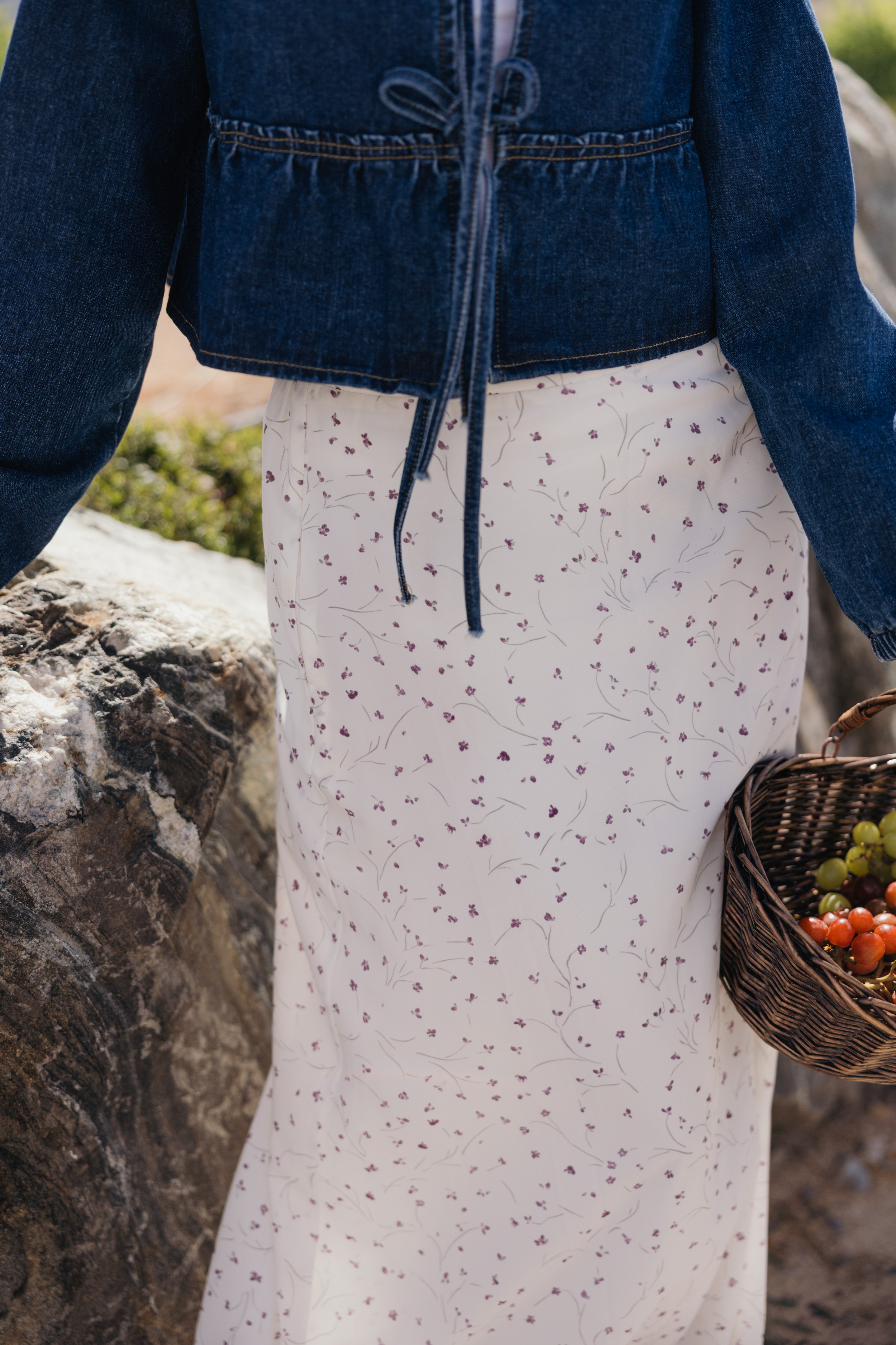 Effortlessly elegant, this ivory maxi skirt features a delicate lavender floral pattern that brings subtle sophistication to any wardrobe. The straight silhouette flatters all figures, while practical back waist elastic ensures all-day comfort. Functional pockets add everyday convenience, and the full lining provides coverage and durability. Perfect for casual outings or dressed-up occasions.