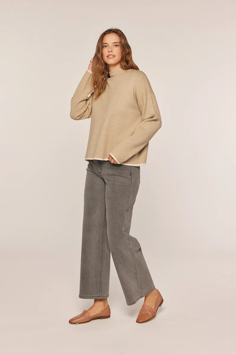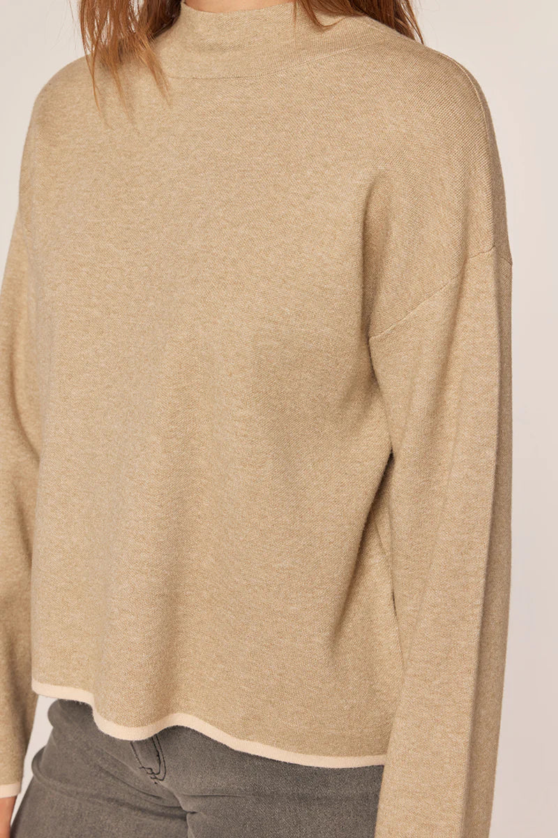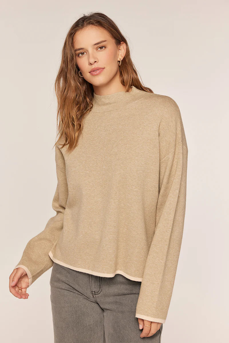 The Merrie Mock Neck Sweater Taupe, Grey/Oatmeal