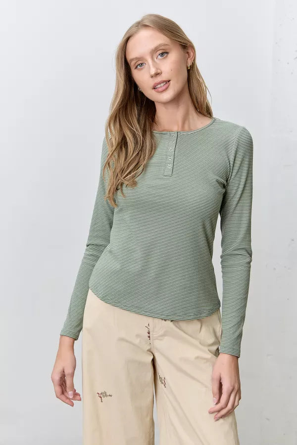 The Evie Round Neck Long Sleeve Shirt in Olive