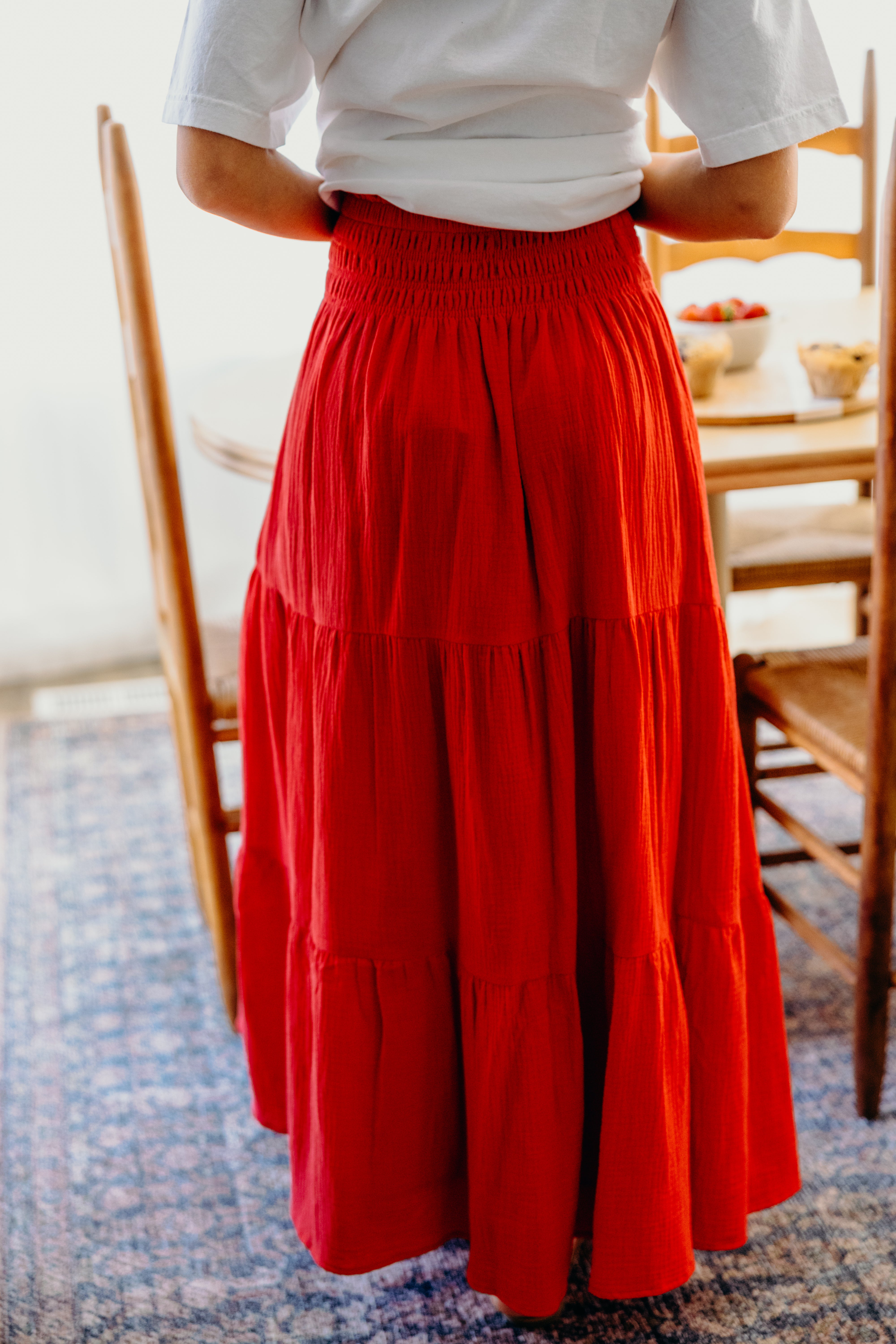 Get ready to twirl in The Pippa Gauze Maxi Skirt – in beautiful red! With an elastic waist for ultimate comfort, this tiered skirt is fully lined and oh so stylish. Ready to make a statement? Look no further!