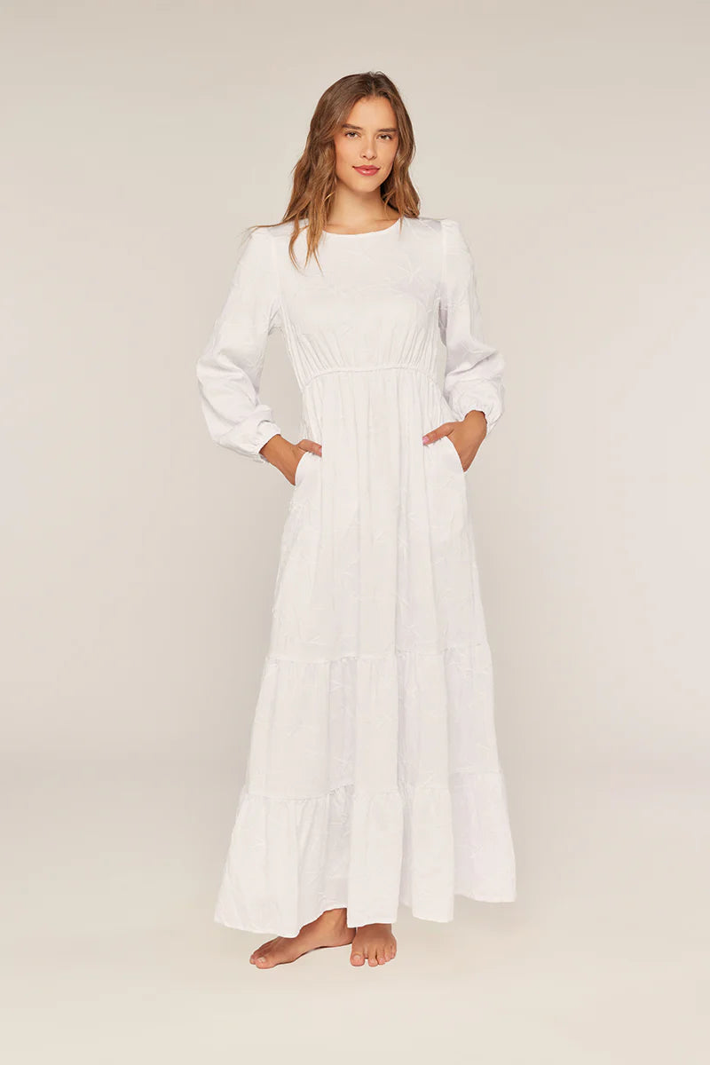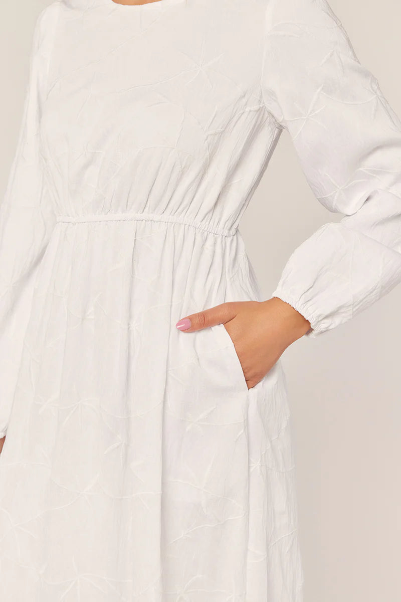 The Berkeley Embroidered Temple Dress in White