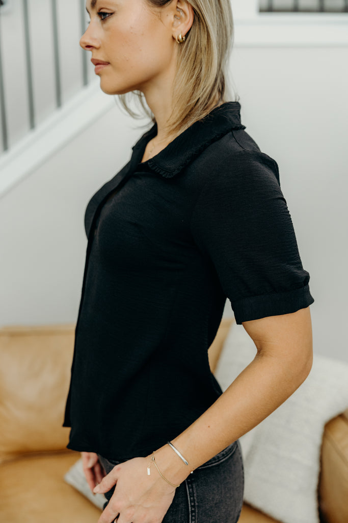 Ruffled Collared Blouse in Black