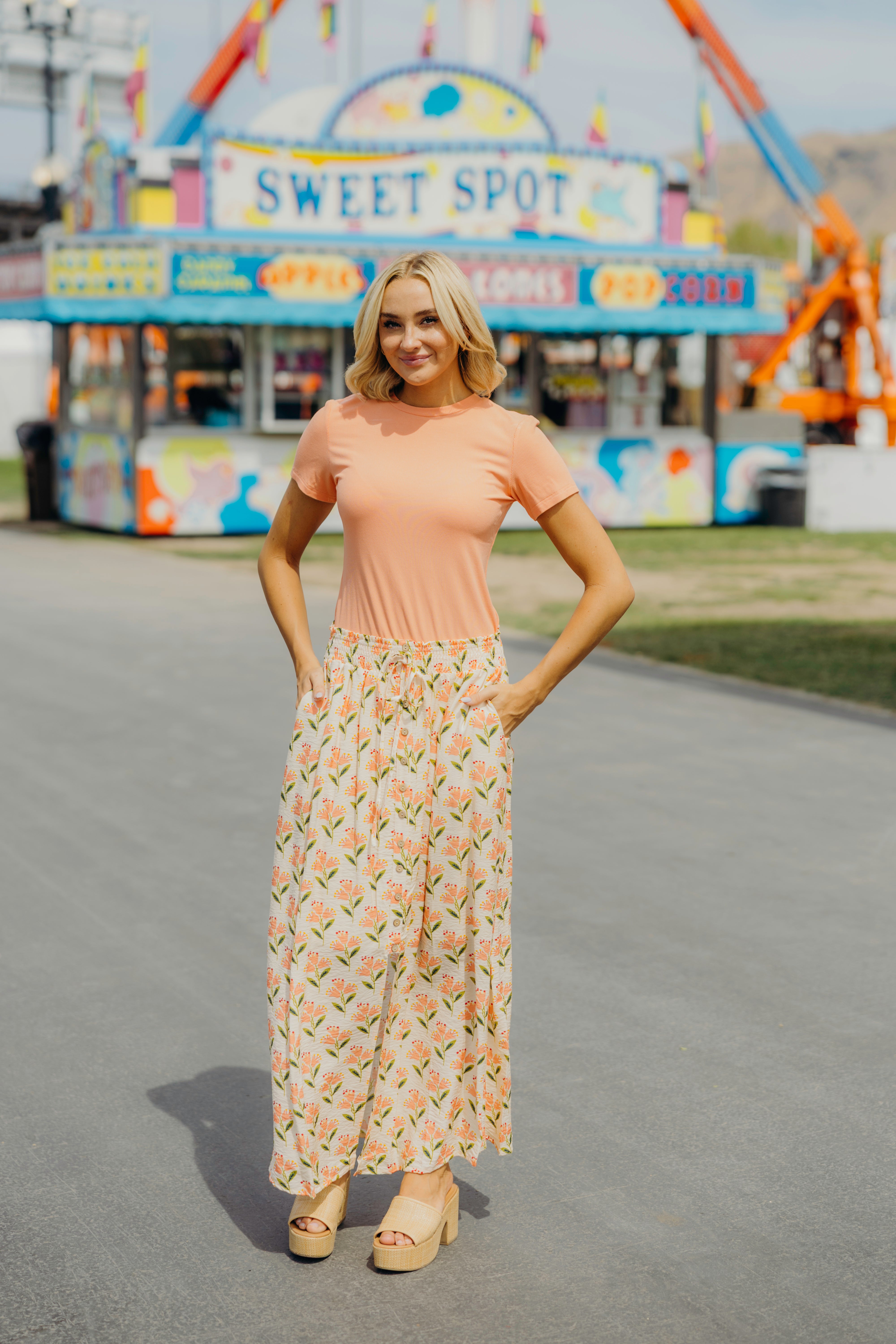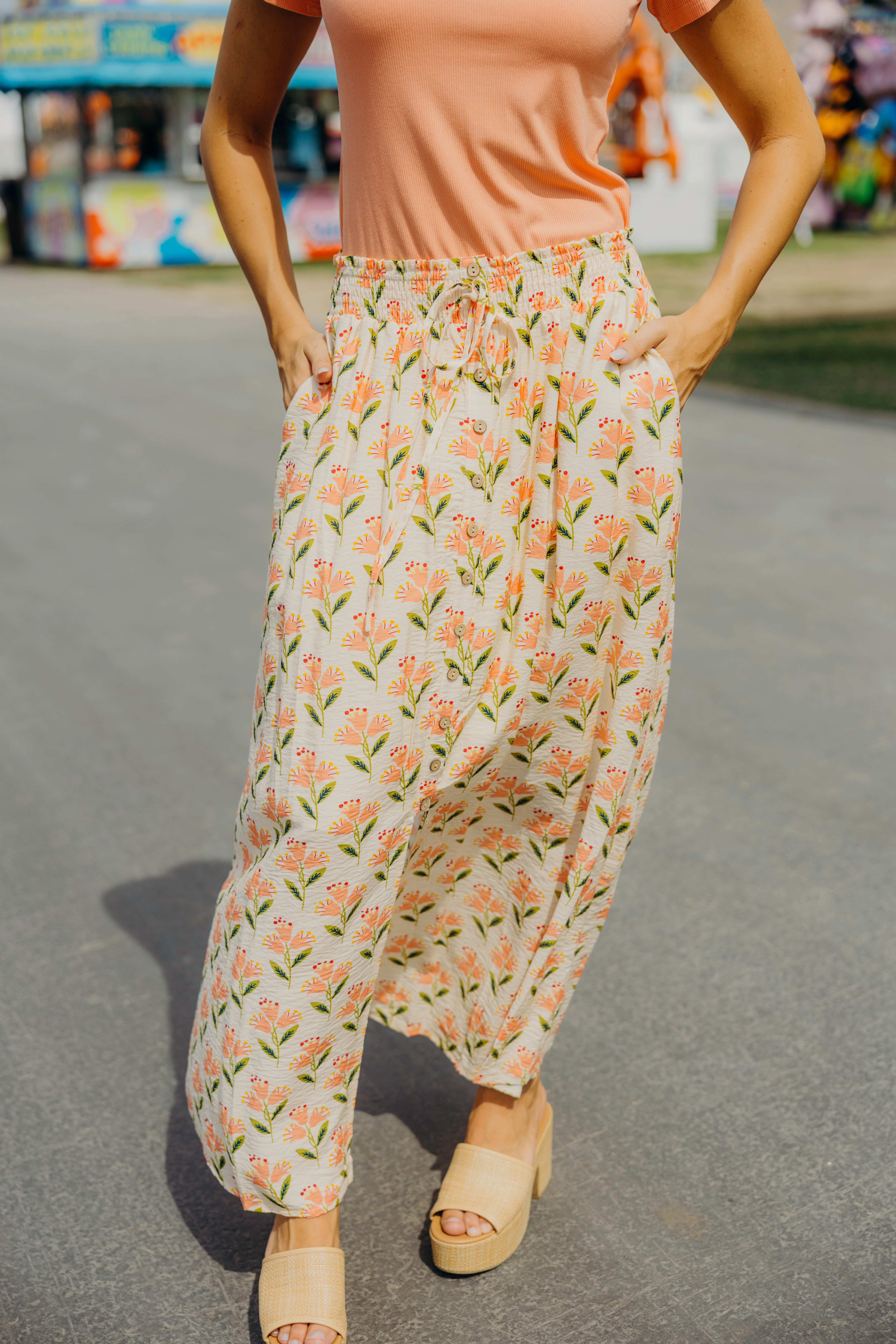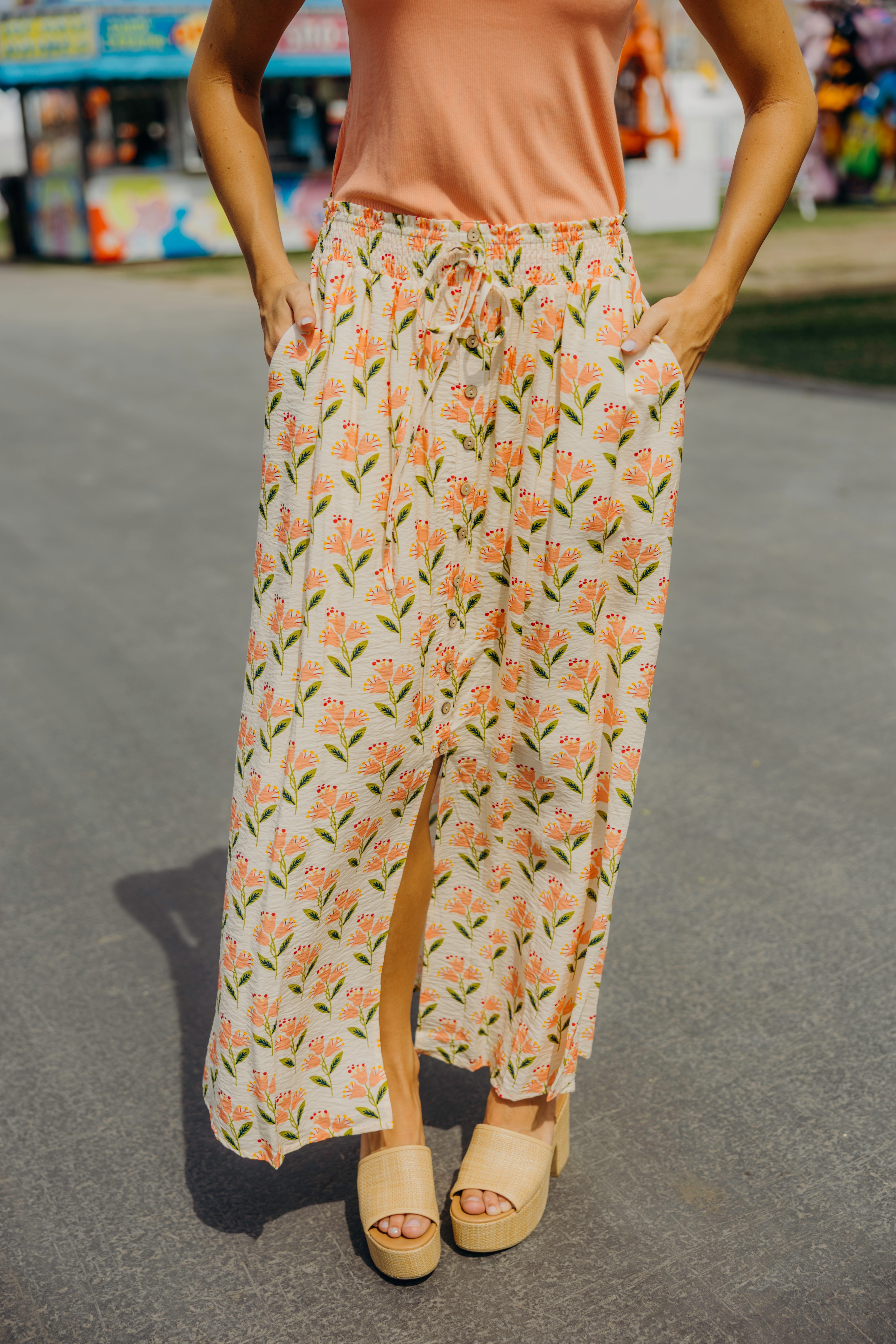The Addison Maxi Skirt brings effortless style with its vibrant folk garden print in warm orange, pink, and green tones. Featuring a comfortable elastic waist and graceful tiered silhouette, this fully lined maxi skirt moves beautifully with you. Perfect for casual days or dressed-up occasions, it's a versatile piece that feels as good as it looks.