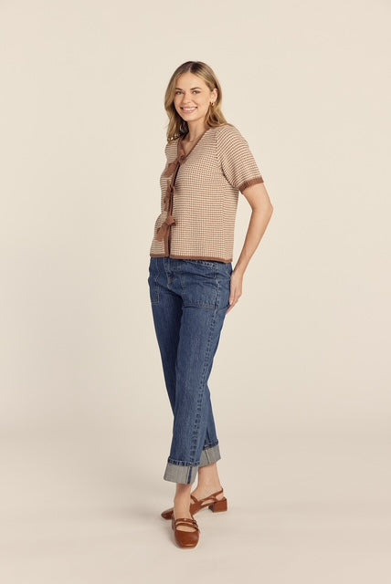 The Darlene Bow Tie Top in Brown