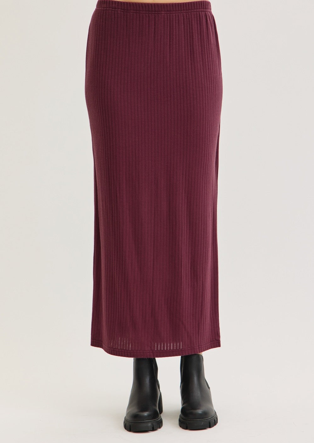 Elevate your wardrobe with this stunning purple pencil skirt that's as comfortable as it is chic. The ribbed maxi silhouette skims your curves beautifully while the elastic waistband keeps you feeling supported all day long. Lined for smooth wear and crafted from soft, touchable fabric, this skirt is ready for the office, dinner out, or anywhere in between. Pair it with our matching Mallory Ribbed Shirt for a coordinated ensemble that's totally effortless.